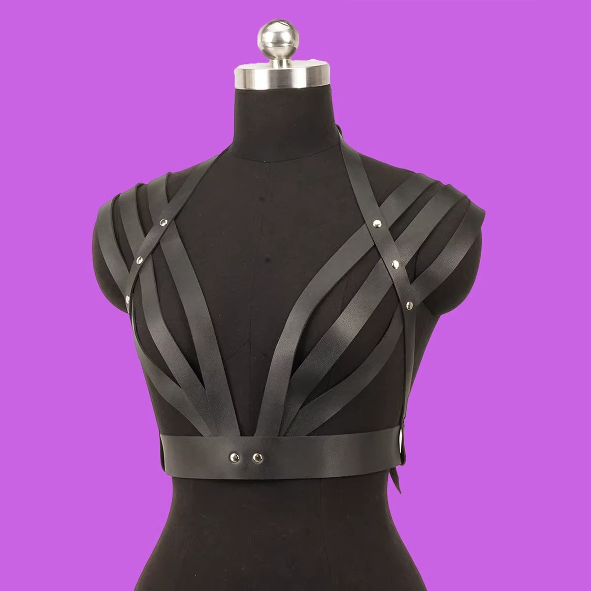Podkreśl swoją pewność siebie i wyjątkowy styl! Ten biustonosz typu harness z efektownymi paskami to odważny dodatek, który nadaje każdej stylizacji charakteru. Idealny do noszenia solo lub jako warstwowy detal do ubrań, przyciąga spojrzenia i dodaje pewności siebie.