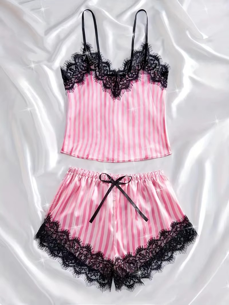 Odkryj idealne połączenie komfortu i elegancji z naszą dwuczęściową piżamką w paski z koronką