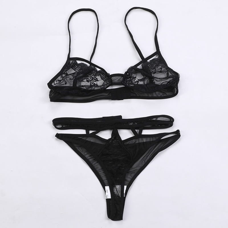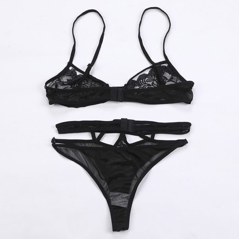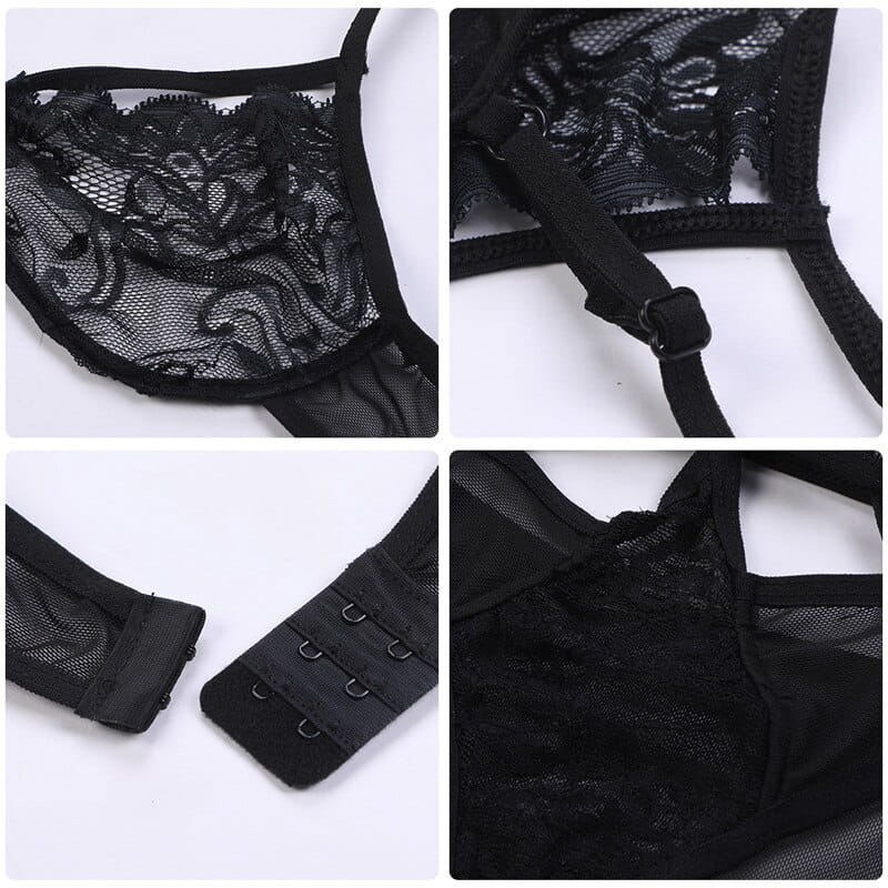 Biustonosz i stringi wykonane z miękkiej koronki.