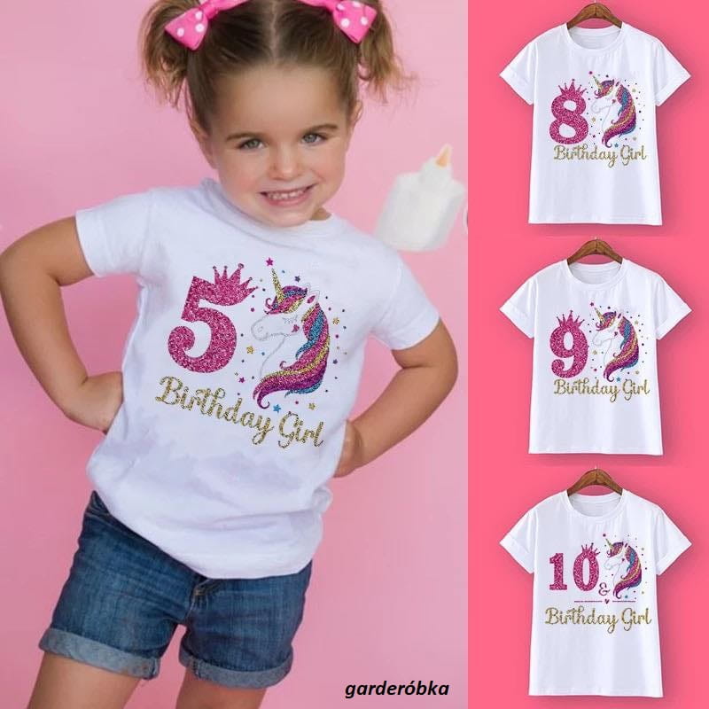 Odkryj naszą uroczą koszulkę urodzinową z motywem jednorożca - idealny prezent dla małej księżniczki w dniu jej urodzin!