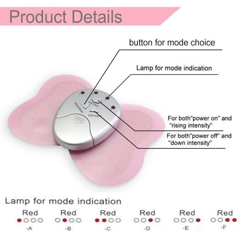 Cechy: 100% nowy i wysokiej jakości. Bezpieczny i wygodny, szybki i cichy. Stymuluj mięśnie za pomocą prostego relaksującego impulsu elektronicznego. Popraw krążenie krwi, stopniowe uwalnianie ból mięśni. Pomóż ćwiczeniom tłuszczowym, spalaj i rozkładaj. Kontraktuj i rozszerzaj obszar docelowy, aby tonować abs, uda, ramiona itp. 100% nowy i wysokiej jakości. Typ artykułu: masażer do ciała i mięśni 4 wyświetlacz z podświetleniem LED: L1, L2, L3, L4 Rozmiar: 12*8cm Zasilanie: 2 x ogniwa guzikowe CR2032 (brak w zestawie) Instrukcja obsługi: Oczyść pożądane obszary masujące skóry. Zdejmij folia przezroczysta z podkładki jel. Umieść podkładki żelowe w pożądanych miejscach ciała. Naciśnij przycisk włączania zasilania. Wybierz tryb i dostosuj poziom wyjściowy. Masażer można wyłączyć pomiędzy cyklem lub ponownie włączyć po jednym cyklu.